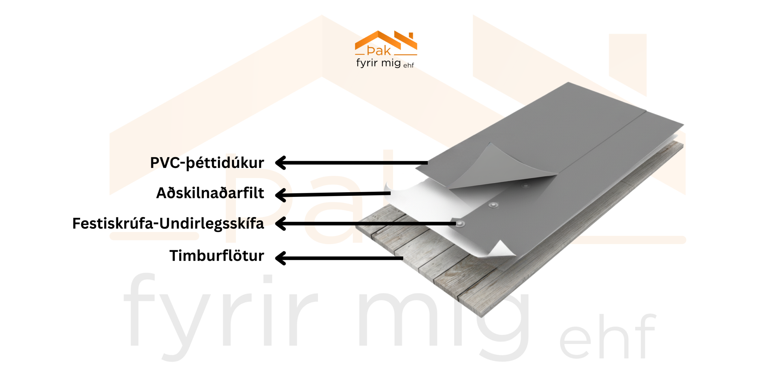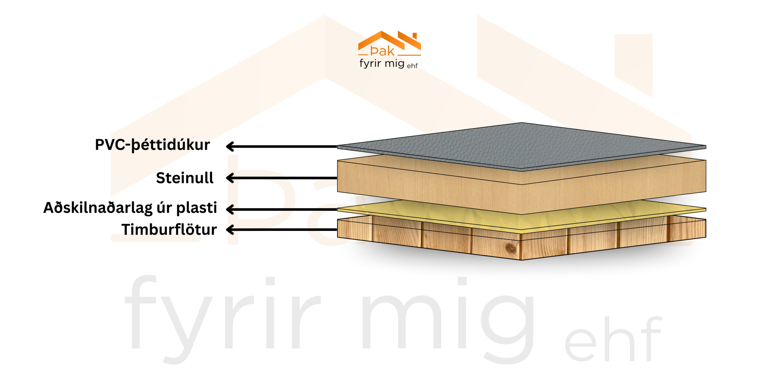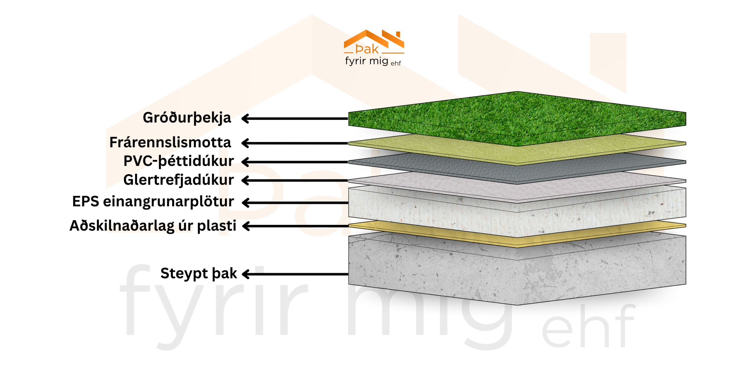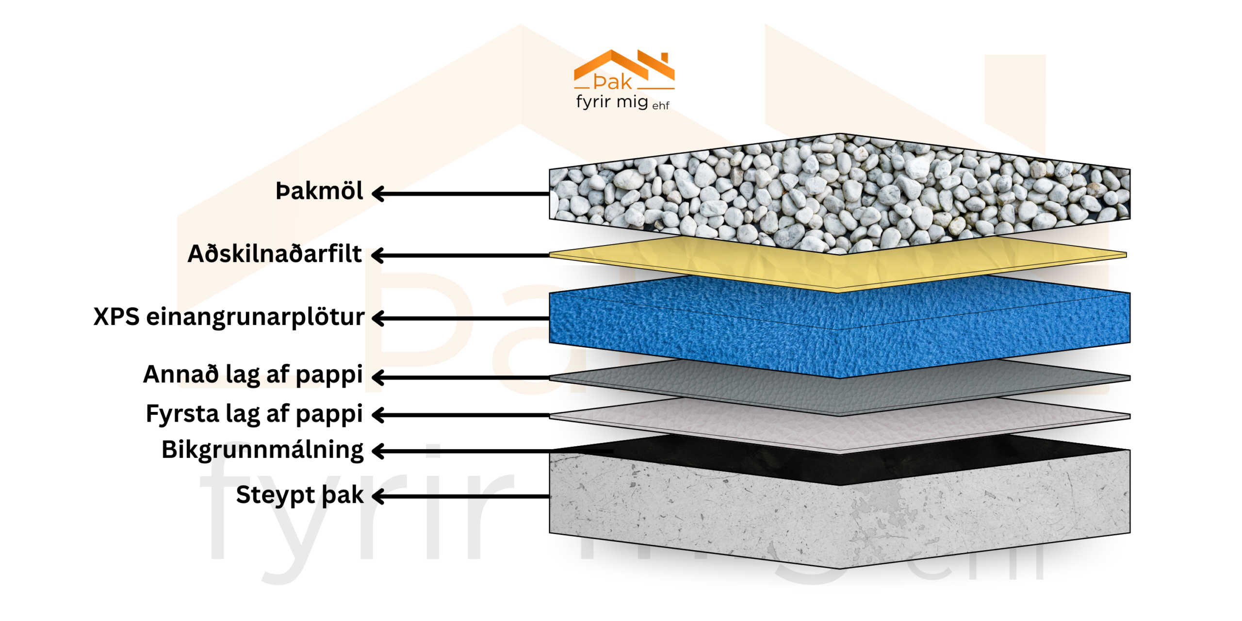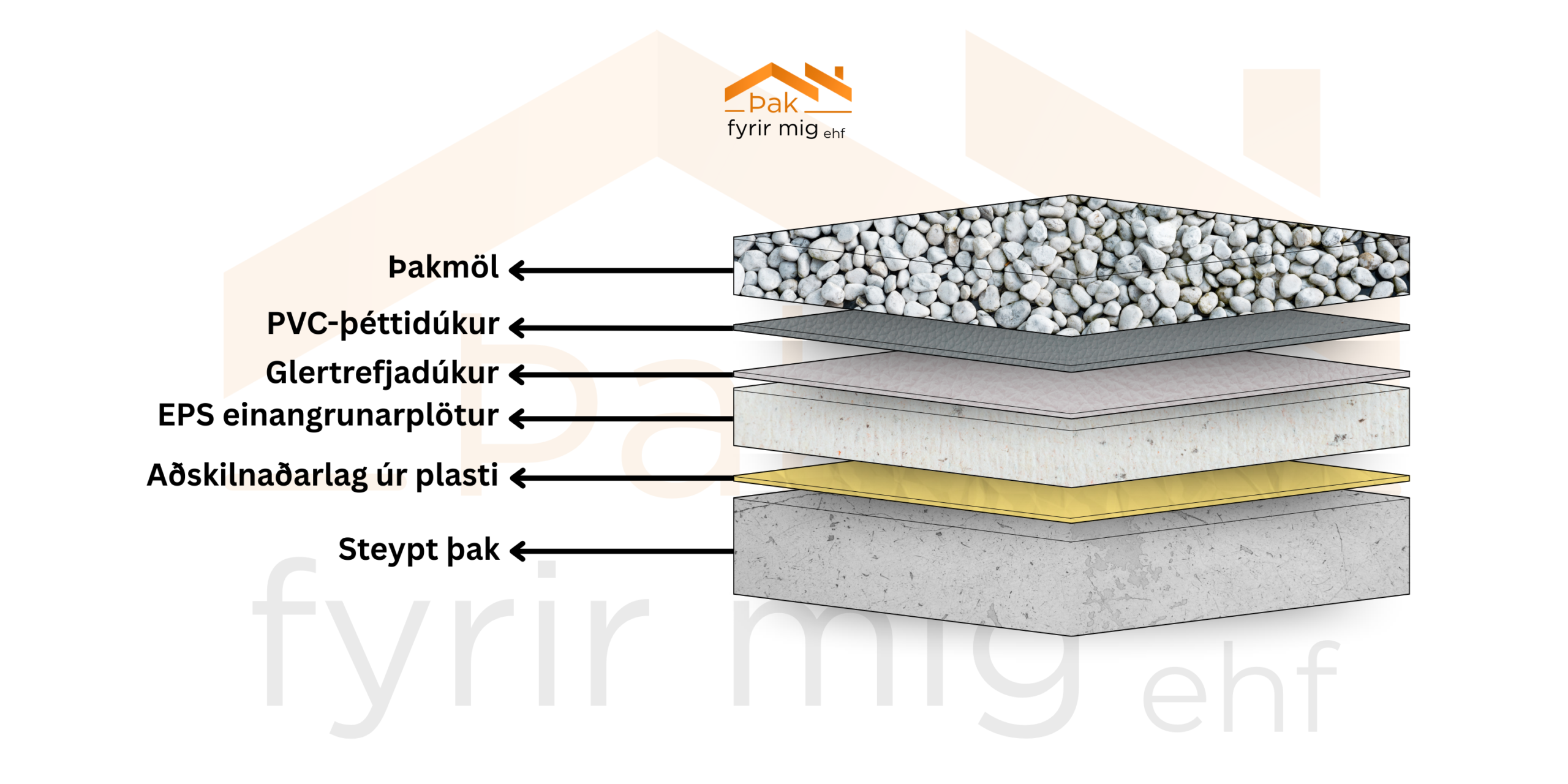 dúkalögnum og þakpappa, ásamt uppsetningu á hitaeinangrun úr pólýstýreni (XPS og EPS).